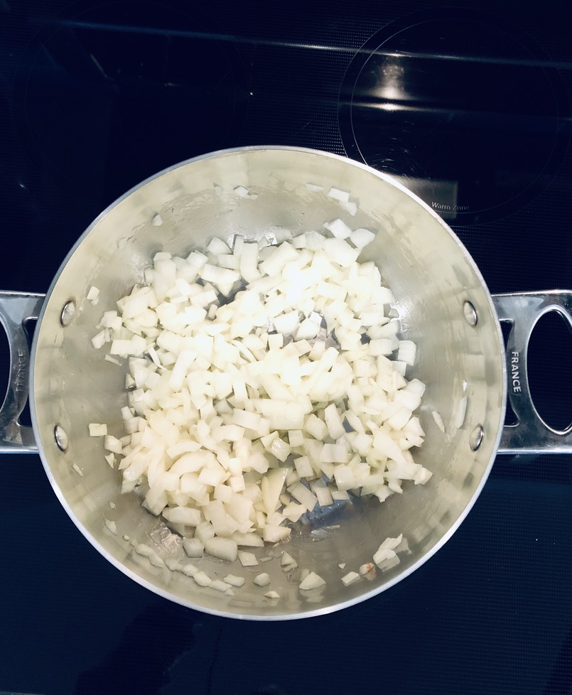 Sauté onion in olive oil over medium high heat until tender and translucent.