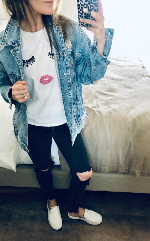 1. Lol! I totally feel you on how moving a chair 15 ft is quite exciting in times like these. This shirt is so cute! I love the lashes & all the different ways you styled it. ๐Ÿ™‚