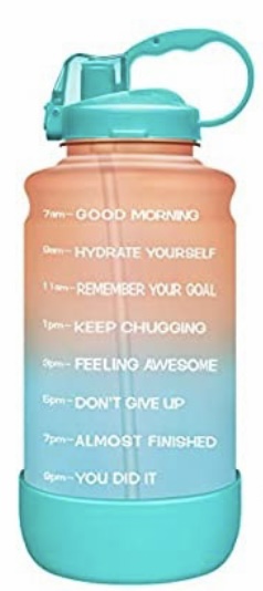 I don’t like to carry a giant jug out with me so I will pour from this big bottle into a smaller one so that I can still track my water intake. Whenever I’m able to finish (or almost finish) this I feel so much better and have significantly more energy!